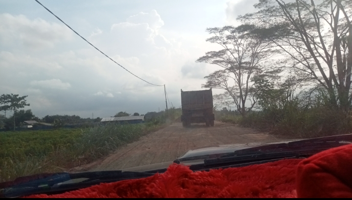 Warga sekitar menyampaikan keluhannya kepada awak media, “kami sangat terganggu akibat debu dari truk pengangkut tanah Galian C yang berjatuhan di jalan dan banyak jalan yang sudah rusak dan berlubang bang,” ucap warga saat diwawancarai.