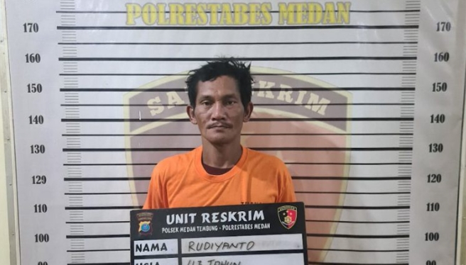 Pelaku diketahui bernama Rudianto Sibarani (43), warga Jalan Bersama, Kelurahan Bandar Selamat, Kecamatan Medan Tembung.