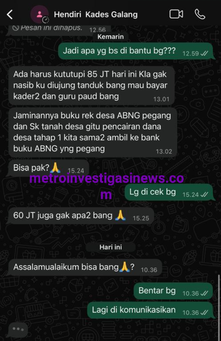 “Diduga berniat atau berupaya menggadaikan buku rekening Desa dan SKT Desa, namun sangat disayangkan hasil konfirmasi tim awak media,”tidak menjawab sehingga berita ini dipublikasikan.(Sigit/Tim)